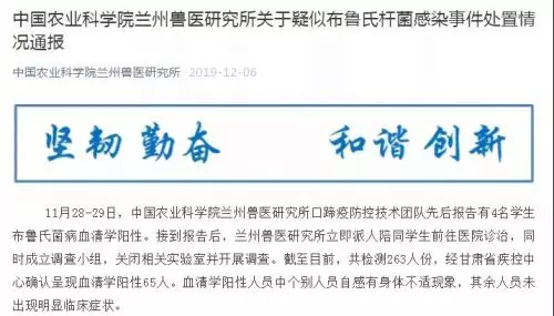 蘭州獸研所通報疑似布魯氏桿菌感染事件