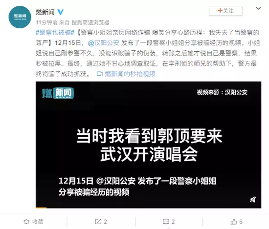 #警察也被騙#【警察小姐姐親歷網路詐騙 爆笑分享心路歷程:我失去了當警察的尊嚴】12月15日,@漢陽公安 發佈了一段警察小姐姐分享被騙經歷的視頻。小姐姐說自己剛參警不久,沒能識破騙子的偽裝,轉賬之後她才說自己是警察,結果秒被拉黑。最終,通過她不甘心地調查取證,在學刑偵的師兄的幫助下,警方最終將騙子成功抓獲。