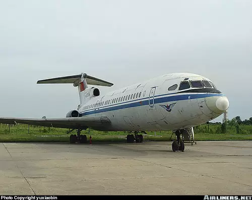 圖為民航退役的三叉戟。注意機翼與機腹幾乎在一個平面上,在野外不用起落架迫降,不可避免的要使機翼摩擦到地面,從而引燃機翼內的剩餘燃油。潘景寅不可能不知道帶油迫降是自尋死路。