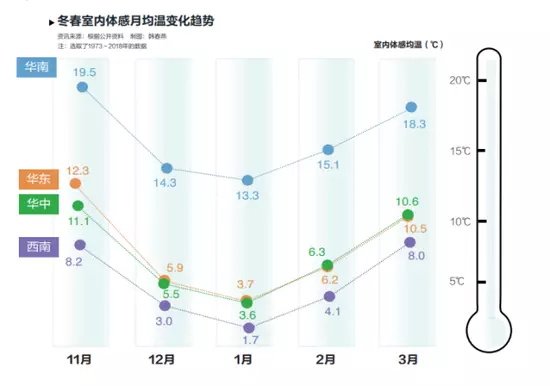 這些地方冬季氣候較為濕冷,空氣濕度較大,如果沒有供暖設施,室內溫度遠低於北方城市集中供熱時的室內溫度。