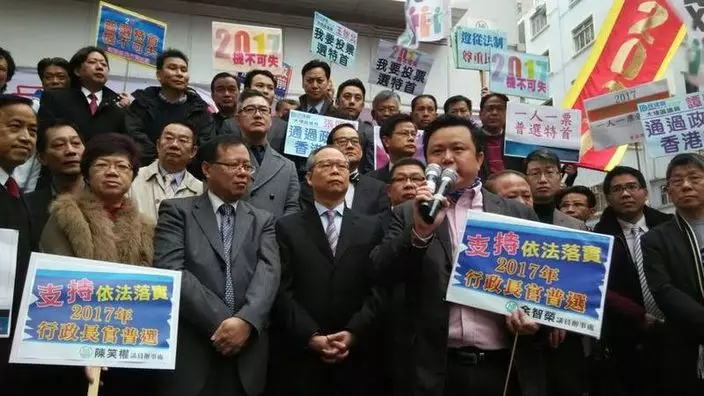 另外,由逾百個地區團體組成的「大埔聯盟」,趁劉江華出席會議前請願,支持在人大8.31框架下,2017年一人一票選特首。