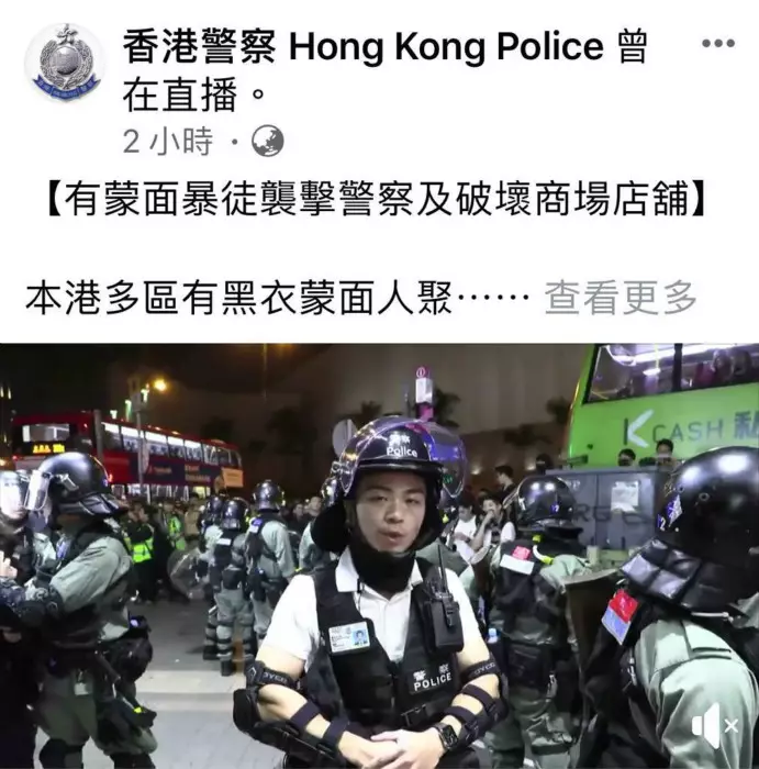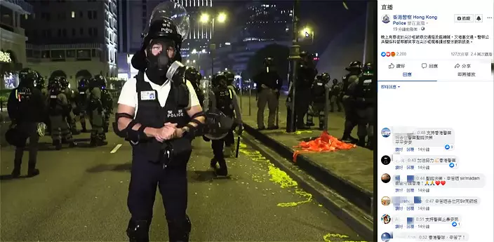 更創新的係警察公共關係科在facebook開直播,由督察鄒吴亨在尖沙咀現場講述警方最新訊息,到午夜前已做了兩次直播。
