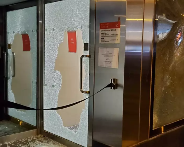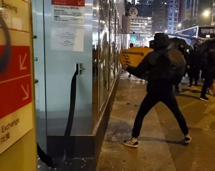 至今早有工人用木板將被破壞的旺角匯豐銀行圍封,對面的恒生銀行的外牆玻璃亦有塗鴉,有工人進行清理。經過一夜激戰後,行人路留下催淚彈殼,清潔工人忙於清理及洗地。