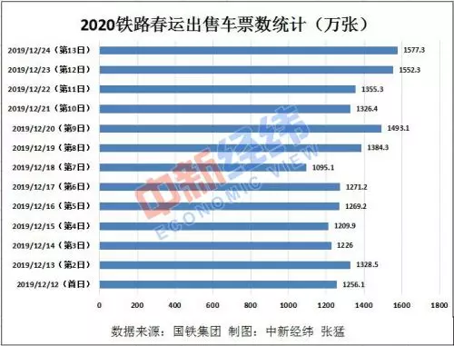 鐵路春運售票第13日(12月24日),全國鐵路共售出車票1577.3萬張,連續兩天出售車票數超1500萬張。中新經緯客戶端梳理髮現,截至12月24日,全國鐵路共出售車票1.73億張。