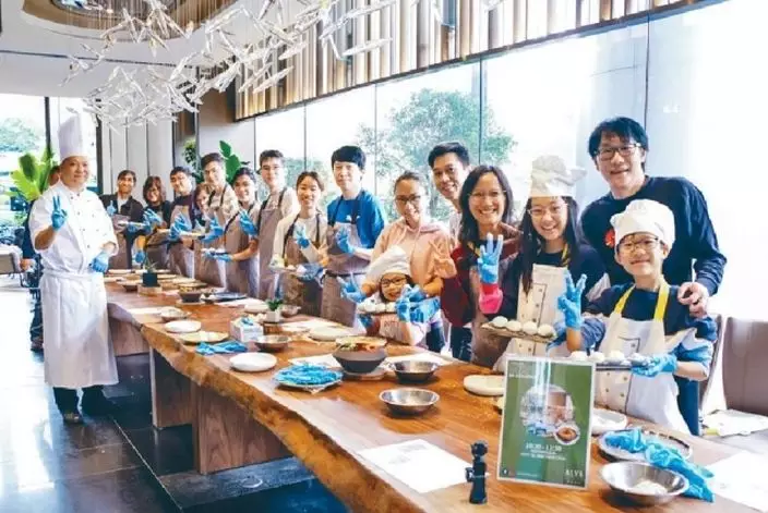 酒店大堂設有可供舉辦活動的共享工作間,圖為酒店舉辦的製作甜品活動。受訪者提供