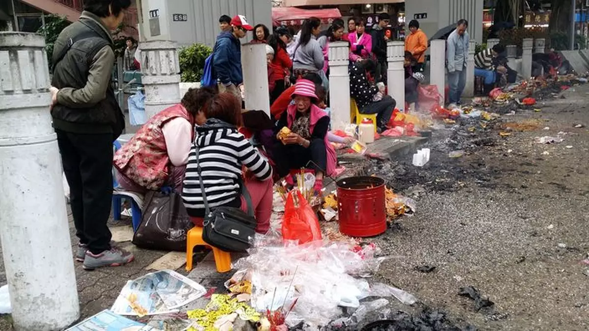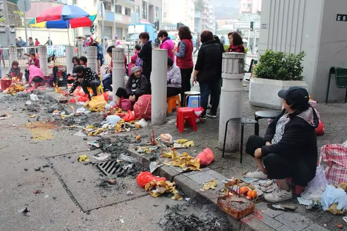 甫走出筲箕灣港鐵站,已嗅到濃濃燃燒香燭祭品的氣味,大批市民及「神婆」昨午在筲箕灣港鐵站對出的巴士總站橋底「打小人」,現場所見,至少有近十人蹲於橋底下唸唸有詞,奮力拍打,旁邊還有香燭祭品,令橋底一片煙霧瀰漫。有市民表示,「打小人」只為祈求厄運於新一年遠離自己及家人。