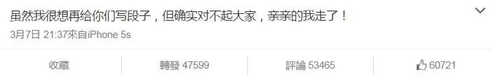 他與病魔戰鬥半年多後昨晚在微博留言說「我走了」,讓粉絲大批湧入留言,希望他能撐過去。