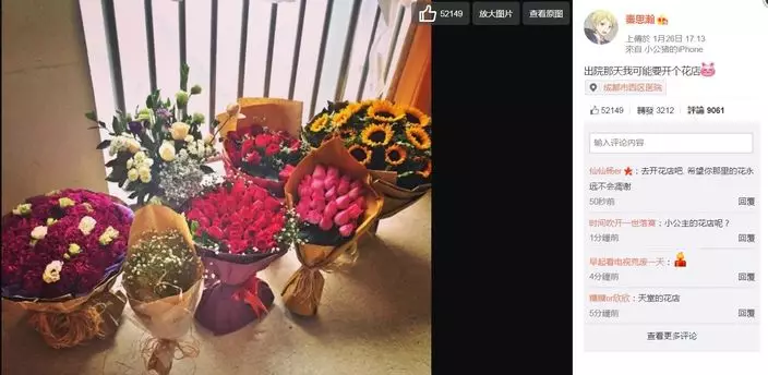 他生前在微博透露過最後一個人生願望:「出院那天我可能要開個花店」。