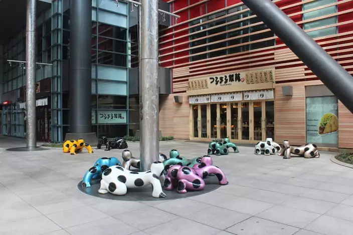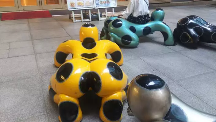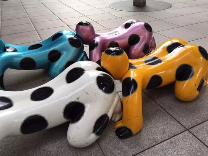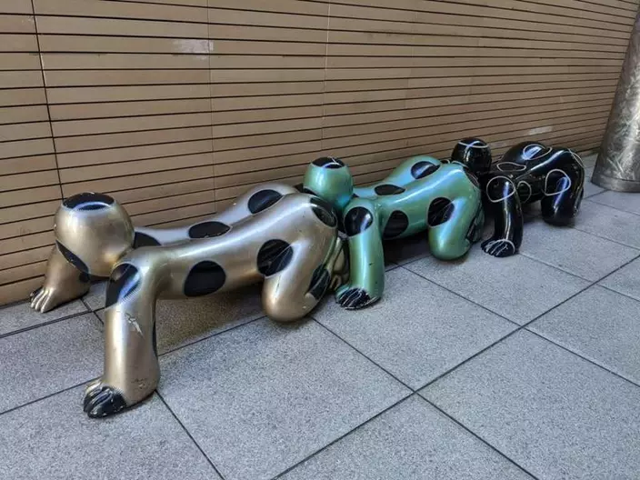 近日有網民在日本電視台(Nippon TV)附近的廣場發現了一些很奇怪的人形長櫈,它們不但趴在地上,呈現出爬行姿勢,而且當幾個雕像放在一起時更猶如一條「人形蜈蚣」。