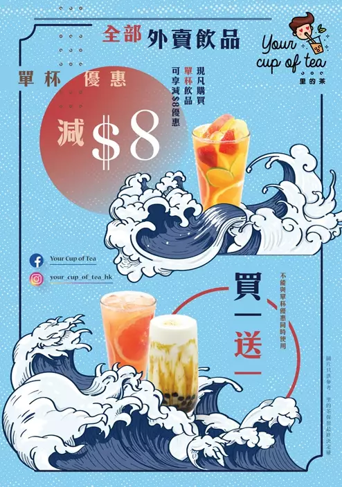 Mee lemongrass全部外賣飲品買一送一,亦設單杯即減$8優惠