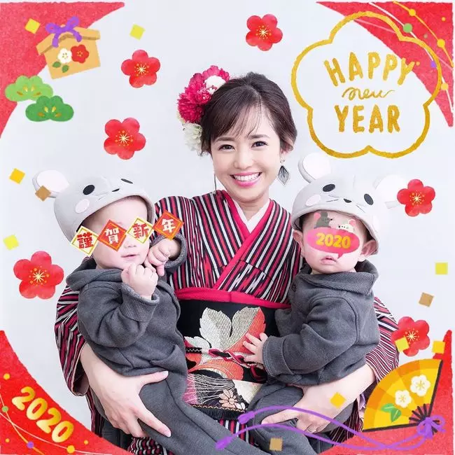 蒼井空在IG晒出與雙胞胎兒子合照,並用了多種語言拜年。蒼井空穿著和服,兒子的面部用恭賀新年、2020的標簽遮擋,向廣大網民拜年。