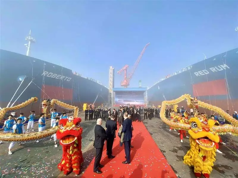 今天,四艘超大型液化石油氣船(VLGC)在江南造船廠同時命名,並將陸續交付給新加坡PETREDEC國際船東。四艘船分別被命名為「Red Rum」「Reference Point」「Roberto」「Red Marauder」。同一天為四艘船命名,並將短時間內全部交付,這也是江南造船歷史上首次。