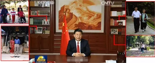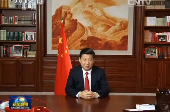 習近平首次以國家主席身分發表新年賀詞,揀咗在個辦公室辦背景來拍攝,出來效果各有演譯,官方媒體拍攝的相片、影片,你睇到幾多,有人就睇到呢啲:
