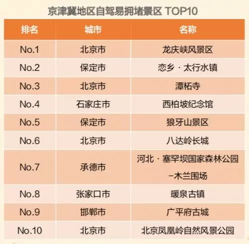 京津冀地區自駕人群愛去自然風景區和古城(鎮)。