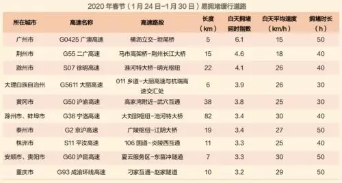 ·春節期間最堵道路平均擁堵時長超過7小時/天
