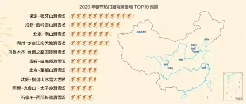 滑雪場方面,預計2020年春節全國自駕熱門滑雪場主要在保定的狼牙山滑雪場,成都的西嶺雪山滑雪場、北京的南山滑雪場等地。
