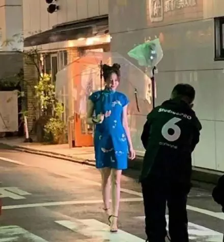 盡顯東方美 迪麗熱巴藍旗袍造型晒誘人長腿