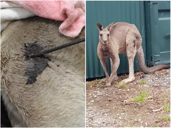 野生袋鼠於澳洲隨處可見,日前有市民在墨爾本萊斯菲爾德公園(Lysterfield Park)遊艇會俱樂部附近發現有隻袋鼠腿部中箭,無法站立並瑟縮一角。「Five Freedoms Animal Rescue」接救助電話到場拯救,人員先安撫袋鼠令牠放下戒備,嘗試接近將牠帶回獸醫醫院治療。經檢查後,袋鼠左邊大腿直接被箭射穿,而箭頭亦刺進頸部,造成巨大傷口。