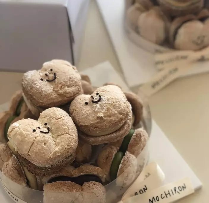 Mochiron(모찌롱)憑藉造型可愛的達克瓦茲以及店内小清新的裝修深受本地顧客及遊客的喜愛。