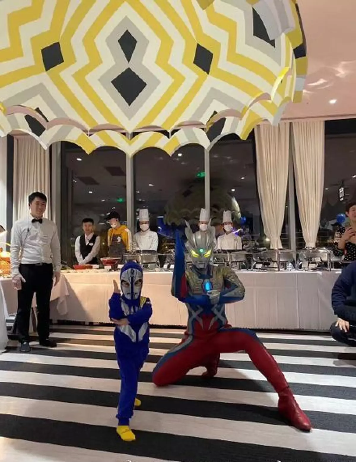 照片中,Baby與一眾女閨蜜合照,未見黃曉明身影。另外,小海綿身穿藍色超人服,還擺出放死光招牌甫士,十分可愛。。Baby昨日深夜貼照發文,黃曉明今早才轉發Baby的貼文,留言:「3歲啦!永遠做你的奧特曼(鹹蛋超人)!」