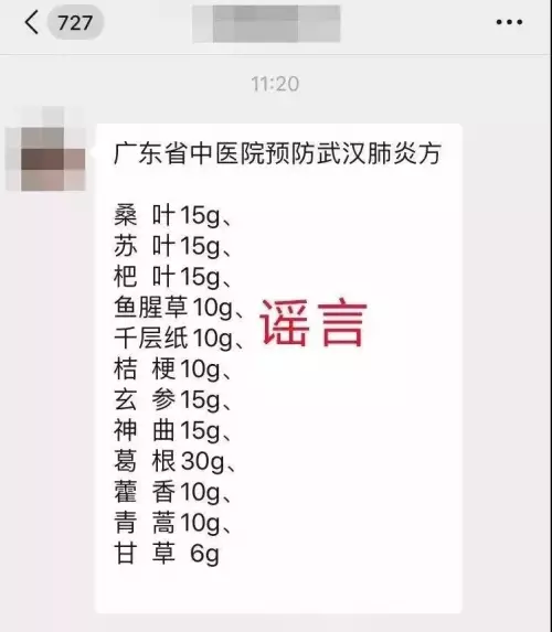 謠言九:有可防肺炎的中藥配方