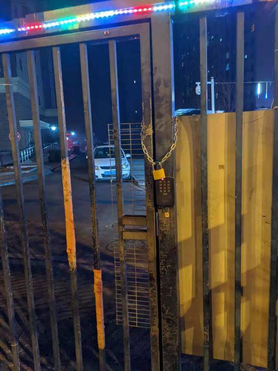 被鎖住的稻田回遷樓小區南區大門 圖/受訪者供圖