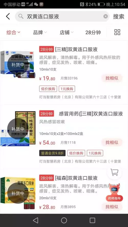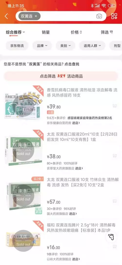 商平台,已經發現雙黃連口服液為售空狀態。