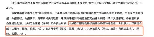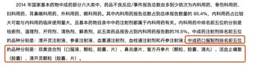 2013~2014 年國家藥品不良反應監測年度報告顯示,雙黃連合劑(口服液、顆粒、膠囊、片)在中成藥口服製劑中不良反應中名列前茅,發揮穩定!