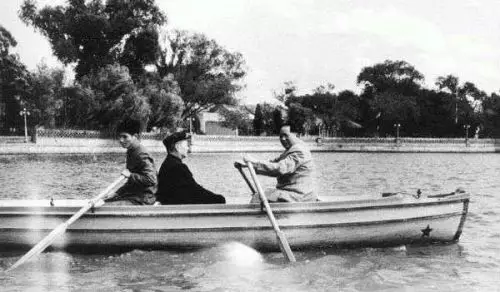 王貴遜帶著徒弟趕了過去。相機在第一會議廳的門前架好後,委員們都過來站好,左等右等卻不見蔣介石。原來,在二樓的蔣介石俯瞰樓下,見委員、警衛、記者一堆人,秩序很亂,就借口身體不舒服,不參加合影了。於是,「二號人物」汪精衛站在了正中的位置。