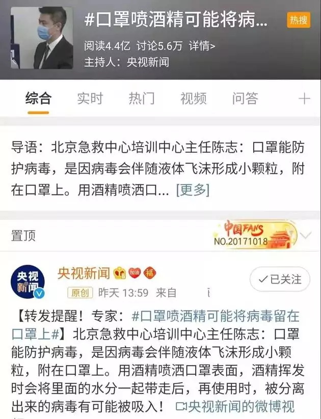 但是,專家提醒,口罩噴酒精可能將病毒留在口罩上。