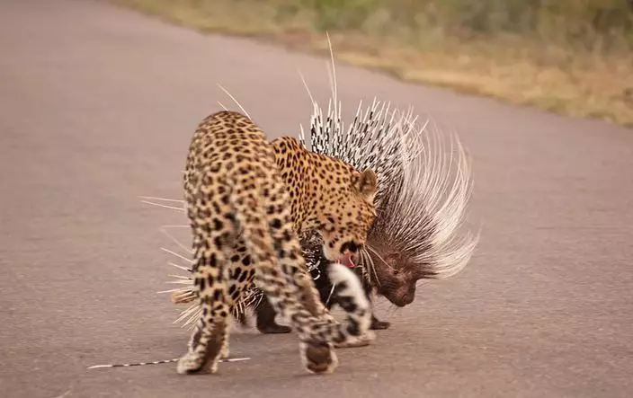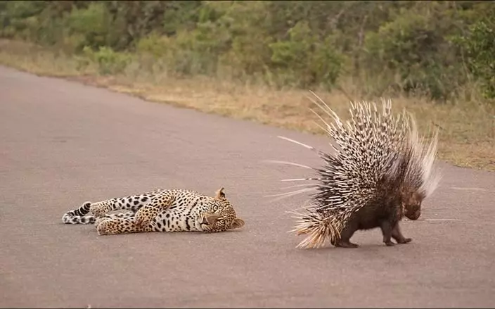 豹與箭豬大戰誰勝誰負?有名動物愛好者在南非的國家公園見證這場賽事,更用鏡頭將過程拍攝下來。