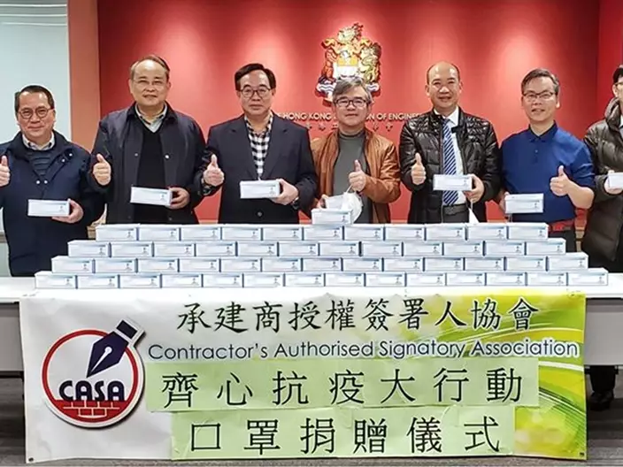 盧偉國非常感謝CASA的溫情暖意,他已將口罩轉贈給香港工程師學會(HKIE)、駐地盤人員協會(RSSA)、香港建設管理交流中心(PMEC)及香港建造專業人士協會(HKACP)等,以支持辛勤建設香港的工程人員。