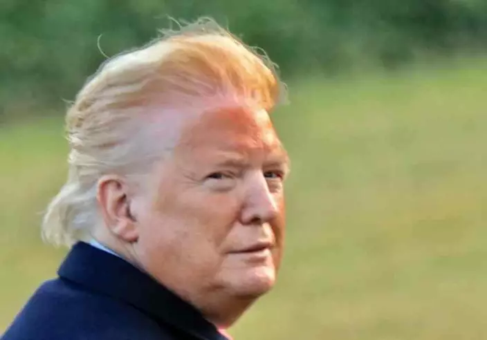 網上有一幅照片瘋傳,見到美國總統特朗普日前乘直升機返回白宮時,颳起強風,吹起了他的頭髮,露出整個前額,清楚見到他的髮線和深色的額頭之間,有一道沒有被太陽曬到淺色界線(tan line),十分趣怪和礙眼。一向注意儀容和形象的特朗普感到不滿,周六在 Twitter 發出訊息,指這是一幅被人用電腦軟件修改過的照片。