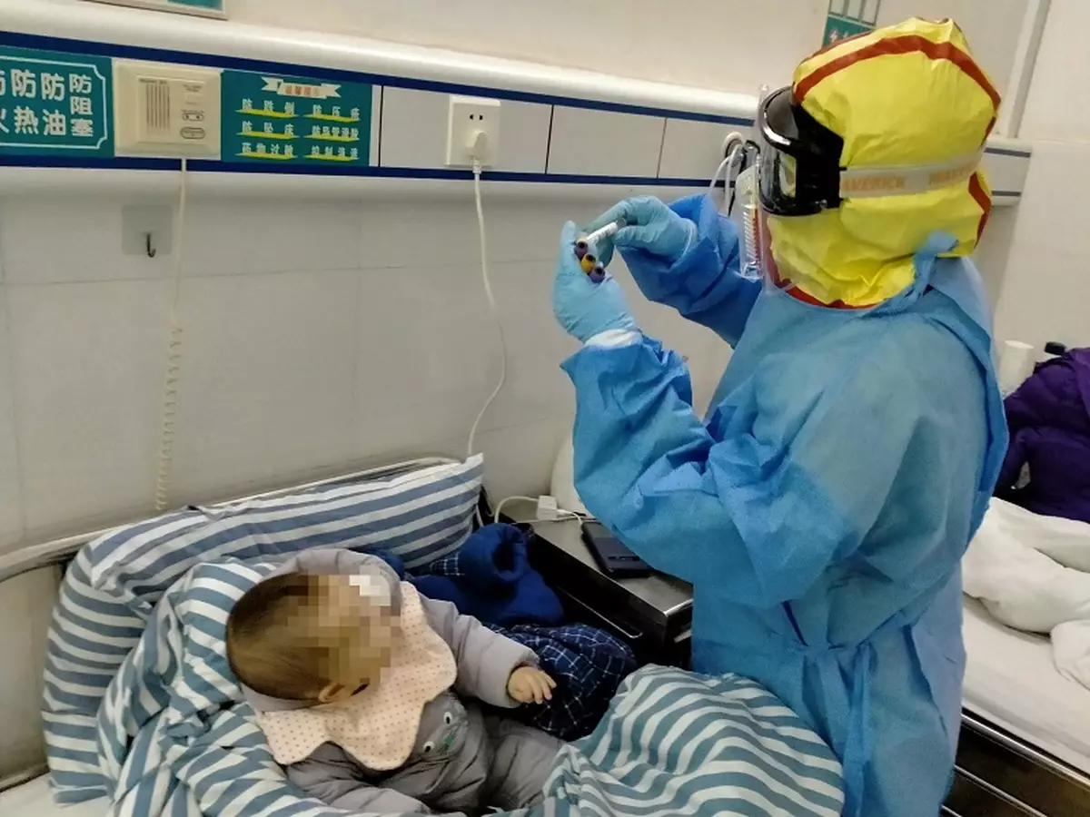 2月10日,在湖南郴州第二人民醫院,一名7個月大的新冠肺炎患者廖某治癒出院,與他一起出院的還有另外4名患者。