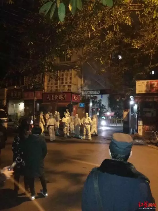 昨(2月9日)晚至今,一張夜晚多人穿著防護服站在小區門外的照片在微信群內流傳,其配文稱成都玉潔苑有人從湖北黃岡回來,1月20日到的,22日開始發燒,還去玉林菜市買過幾次菜,昨日去醫院,結果被確診感染新冠肺炎。