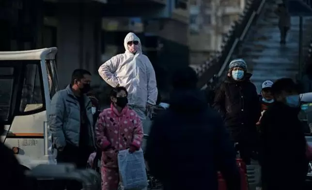 1月31日,在武漢市漢口新華路,一些送疑似新冠病毒感染者去醫院確診的家屬站在路邊等消息。攝影/長江日報 金思柳