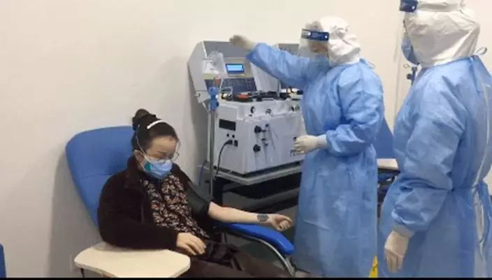 今日(2月14日)下午2點,繼武漢金銀潭醫院院長張定宇在前一晚呼吁新冠肺炎康復患者捐獻血漿後,金銀潭醫院迎來首位捐獻者。