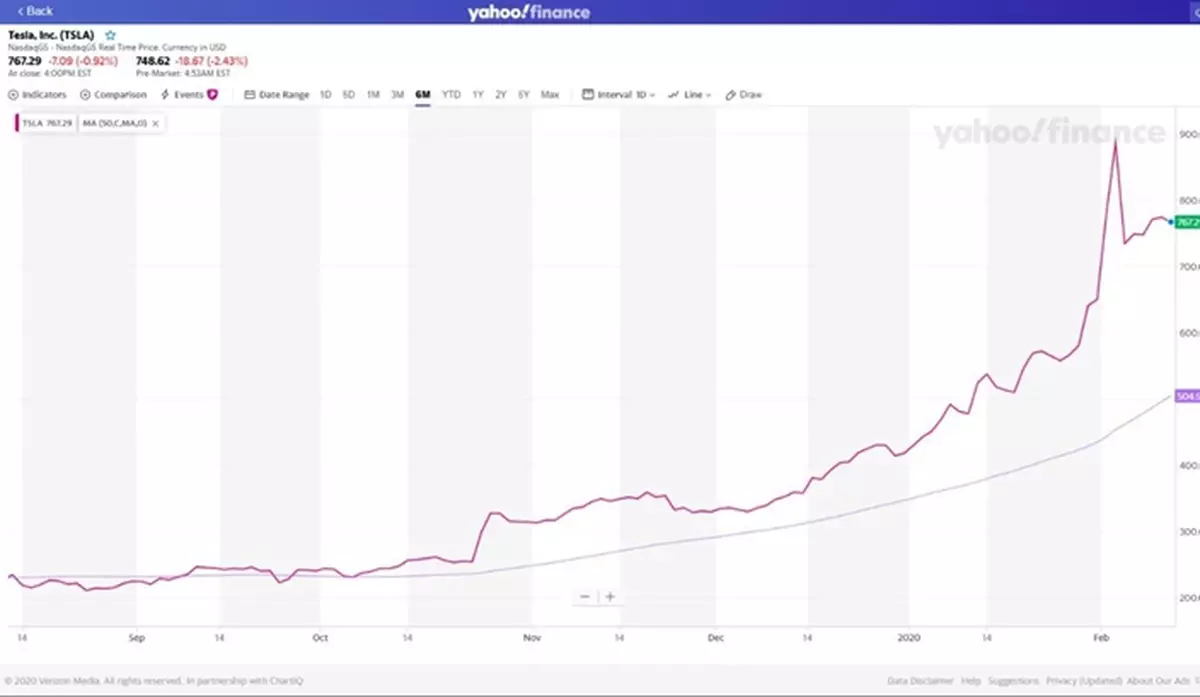 尚風在今年1月7日曾談過特斯拉(Tesla),當時說「特斯拉結果還是靠中國才能成功增加產能,估計公司很快可以首次轉虧為盈,難怪馬斯克在發佈會上難掩興奮跳起舞來,影片近日在網上瘋傳。特斯拉股價自去年6月190美元開始起飛,過去半年累升1.46倍至471美元,市值820億美元,在中國找到出路,看來股價已進入長期上升軌,不用高追,如有調整可低吸。」真想不到,一個月後,在2月4日,特斯拉股價已升至968美元歷史新高,現價767美元。