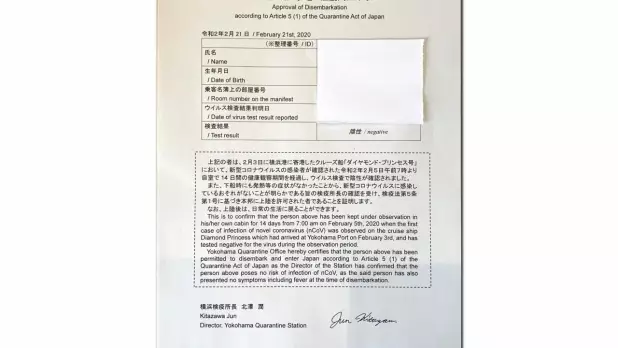 日方就有關病毒檢測工作會於早上完成,船公司早上約10時會透過廣播通知已接獲檢測證明書的旅客離船。(楊和生提供)