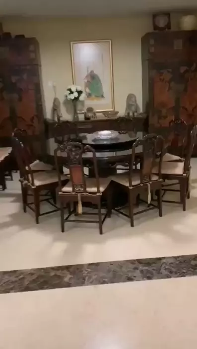 帶大家參觀完廚房,肥媽就正式帶大家House Tour,她先介紹以中國風設計的飯廳,透露飯廳的古董傢俬都是她從前清水灣的家搬去,是她媽媽留給她,等同她的「嫁妝」,所以一直不捨得出售,因緣際遇下將它們搬到沙巴的豪宅;去到客廳,是與孫兒們共享天倫的地方。