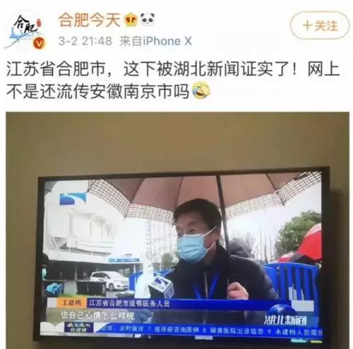 3月2日晚,湖北衛視新聞節目刊登採訪者信息時,錯寫出「江蘇省合肥市」的字樣,一時激起網友熱議,「湖北衛視 江蘇省合肥市」的詞條迅速竄上微博熱搜前列。