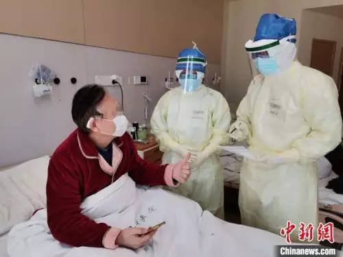 丁盛和同事查病房,患者豎起大拇指。 西部戰區總醫院供圖