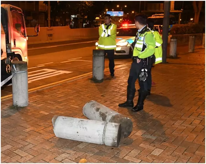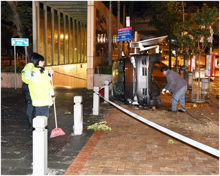 七人車香港仔撞塌石柱剷行人路翻側
