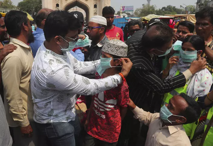 印度民衆近日也紛紛戴上口罩防疫(AP圖片)