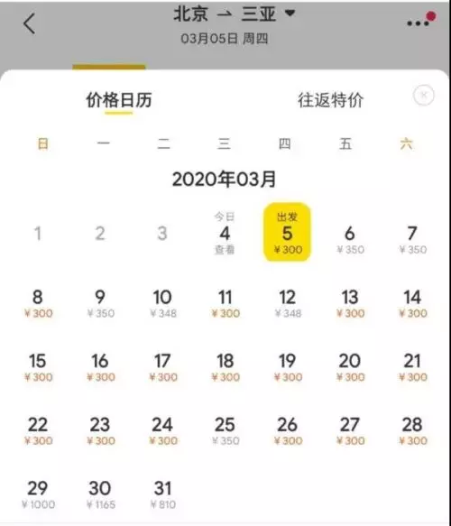 即使平時熱門的京滬航線,3月份票價也處於歷史低位。3月4日至3月7日,北京至上海單程機票最低價為經濟艙價2折價格,售價270元;3月13日至3月28日,該航線最低票價僅300元。
