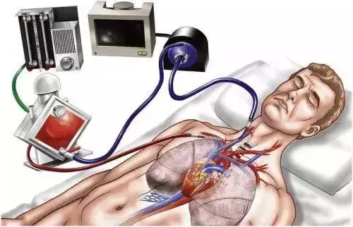 通俗地講,ECMO是體外生命支持(ECLS)的一種方式。主要工作方式是,通過將體內血液引出經過體外的膜肺和血泵再輸回體內,通過使用人工膜肺和人工泵替代心肺,讓心和肺得到休息,並維持機體所需的氧和血流,實現對急性呼吸或循環衰竭患者進行全部或部分的有效生命支持,為心肺功能的恢復贏得寶貴的時間。ECMO的出現使許多危重症的搶救成功率明顯上升,因此它一般出現在各種傳統治療方法難以將患者從生死線上挽回的場景。