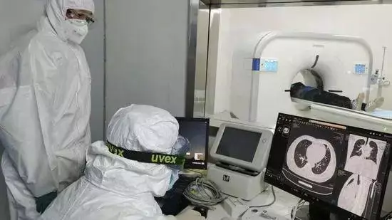 火神山醫院內醫生在為新冠肺炎患者進行肺部CT掃描。圖源:新華社