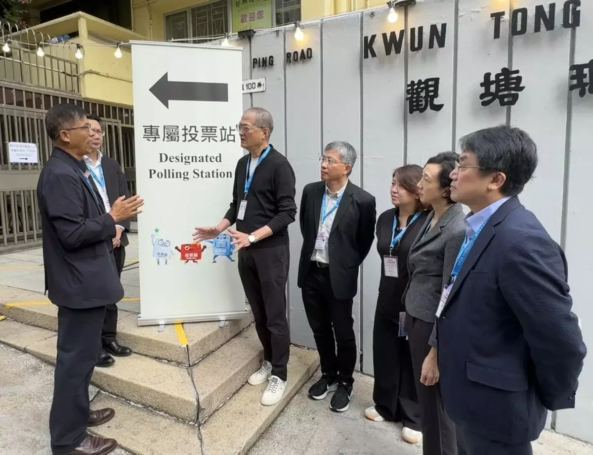 醫務衞生局局長盧寵茂(左二)等官員連同醫管局代表早上前往專屬投票站巡視,了解運作情況。