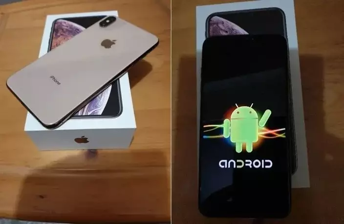 從他Po出的照片中可見,這台型似iPhone10的手機,背面印著蘋果標誌,底下也有iPhone字樣,可是開機之後,屏幕首先出現卻是安卓經典標識「小綠人」,令Po主開開心心換新機的心情頓時跌倒谷底,只想閙人。
