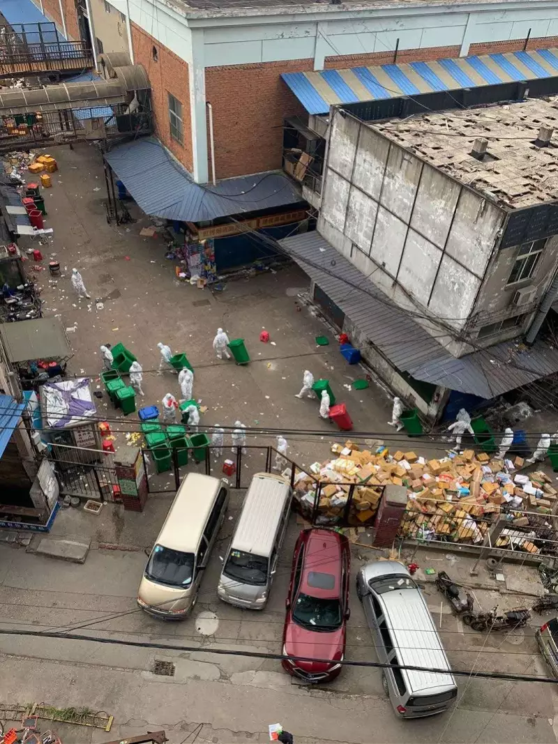 不過,另一則視頻則顯示,一名身穿環衛工人工作服的現場工作人員在受訪時稱,「只是清除物品,並非拆除。」據其介紹,目前華南海鮮市場東西兩區的凍品已差不多處理完畢,店內用品正在處理,這些東西都會集中封存進專用桶內,進行無害化處理。「我們是清裏面的商品雜物。凍品從冰箱裏拿出來,再把凍品放到桶里,然後放到車上。無害化處理。不是拆。」